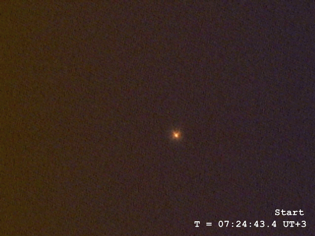 The occultation for this particular location was predicted to be at 07:24:42 UT+3. As a precautionary measure with