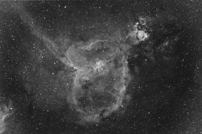 The Heart Nebula lies at a distance of about 6,500 light-years away and spans another 180 light-years in diameter.