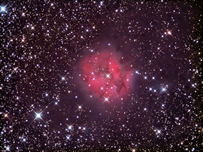 cluster at the heart of this rich nebulosity and which is evident in the image below. Widefield photos of the region reveal