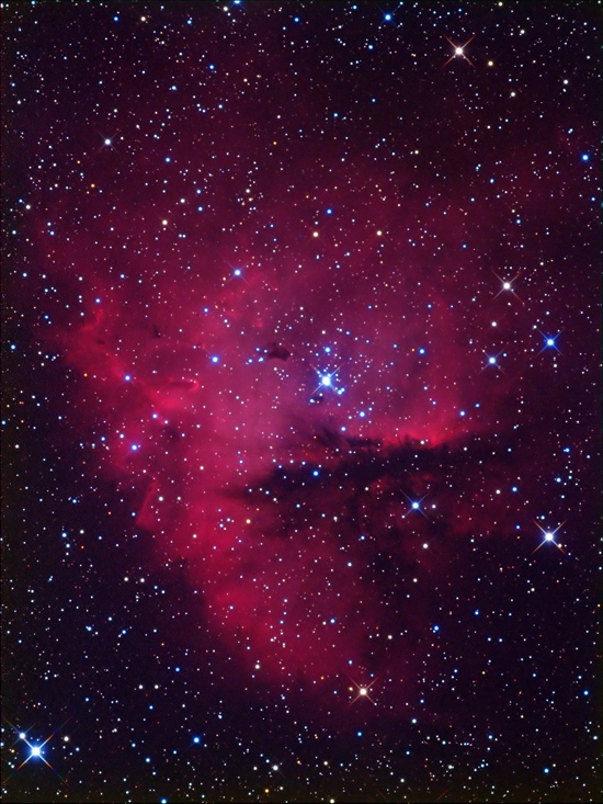 stellar nursery. The central portion of the nebula in the image below is home to a young and developing open cluster and