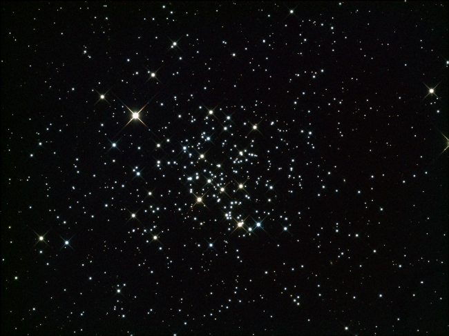 independently rediscovered and catalogued by Messier in 1780. The cluster lies than two degrees from Acubens (á-Cancrii,