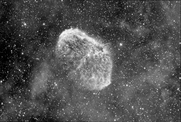 HIP 99546 (mag 7.50), is the star responsible for this stunning nebula. Discovered by Herschel in 1792, the Crescent Nebula