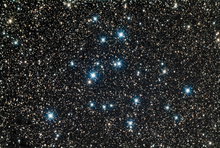 few dozen to a few hundred stars and are weakly-held gravitationally. Perhaps the three most famous such open clusters