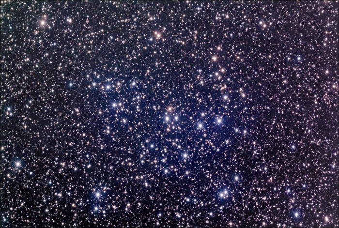 as suggested by the plethora of bright bluish stars in the image below. It is comprised of approximately 100 member stars and dominated