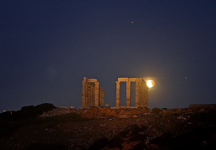 Date: Feb 21, 2008 06:27:06 UT+2 Location: Sounio, Greece Equipment: Canon EOS 300D Canon EOS EF 28-105mm USM @ 78mm / f4 Exposures: 1 x 4 sec ISO 400 RAW Image Format 3072x2048 Image Size Manual Mode Software: Digital Photo Pro V1.6.1 Photoshop CS2 Processing: RAW to TIFF (16-bit) Conv Resampling JPG Compression |