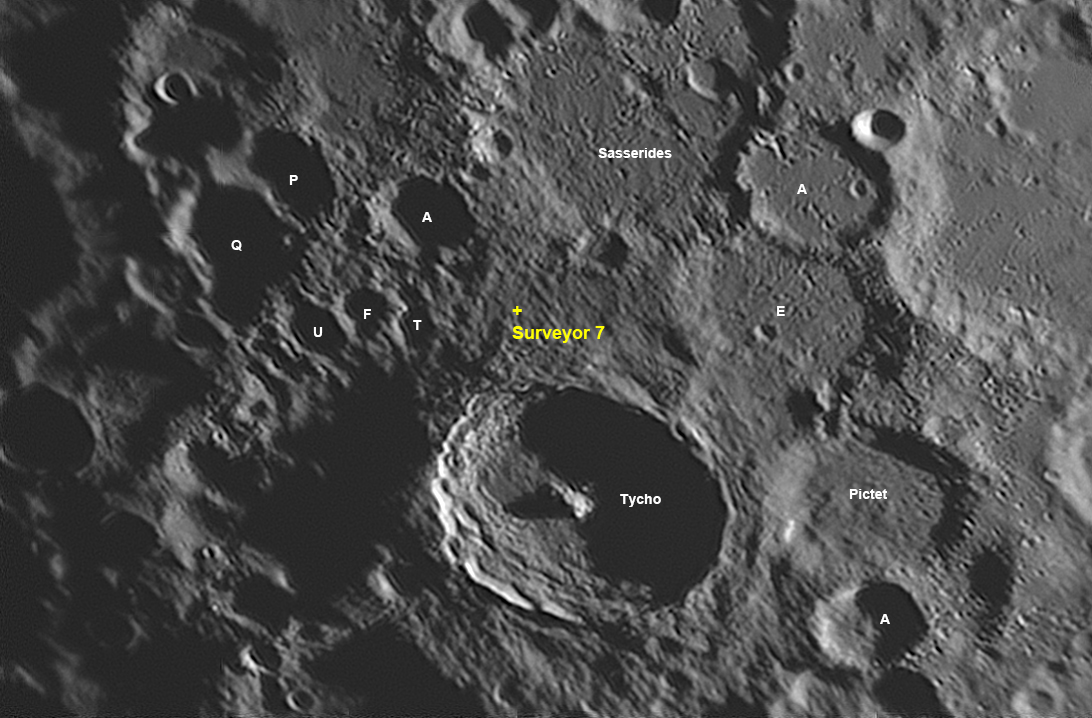 Note: Surveyor 7 was the final mission to the Moon during the Surveyor program. The spacecraft landed 30 km north of