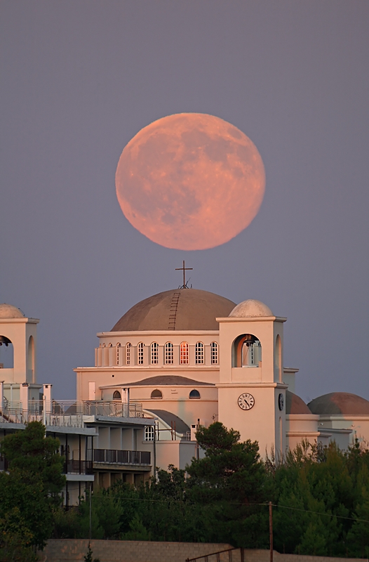 The effort below involving the rising full moon was taken a few kilometers from the seaside resort area of Oropos northeast of Athens and
