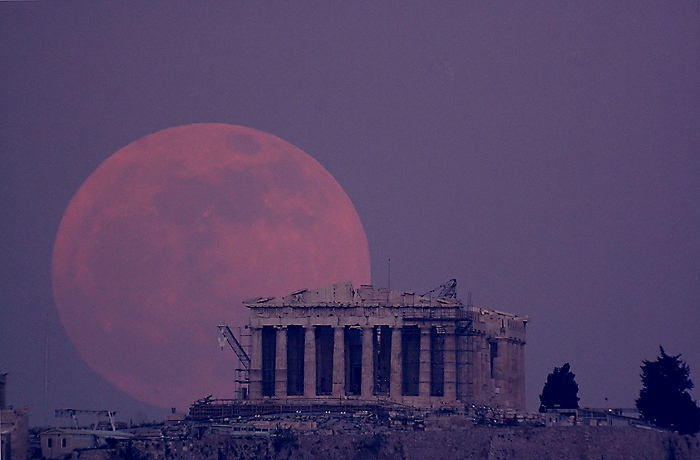 moon against well-known landmarks in Greece. An earlier effort involving the rising full moon against the Parthenon (447-438 BC) in central