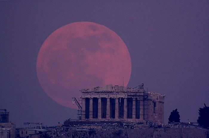 moon against well-known landmarks in Greece. An earlier effort involving the rising full moon against the Parthenon (447-438 BC) in central