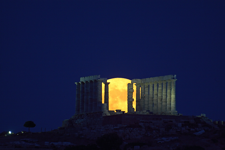 Note: For additional photos of the sun and/or full moon against other well-known Greek archaeological grounds