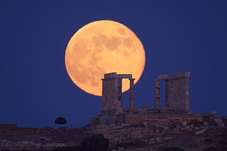 Note: For additional photos of the sun and/or full moon against other well-known Greek archaeological grounds