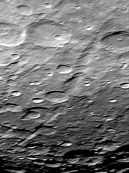 Named after the 17th Czech astronomer, this series of crater depressions in the southeastern quadrant measures 445 km