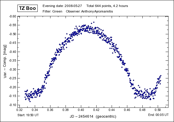Note: The eclipsing binary star TZ Boo is a type W UMa variable with a period of just over six hours