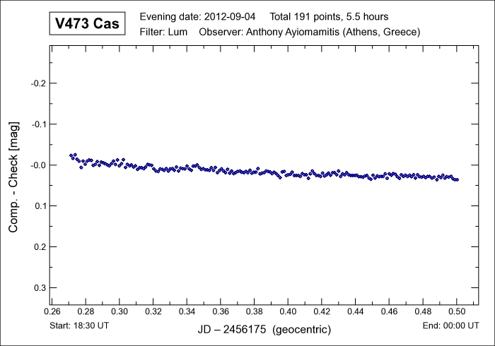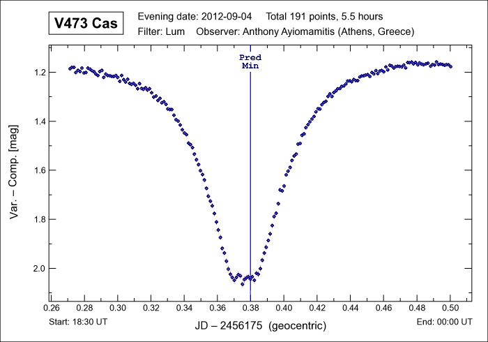 Note: The eclipsing binary star V473 Cas is a quick eclipsing binary variable star with a period of 0.41546073