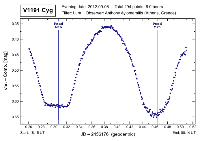 Note: The eclipsing binary star V1191 Cyg is a quick eclipsing binary variable star with a period of 0.3133885