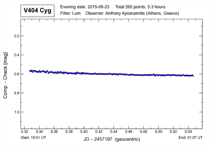 Software: CCDSoft V5.00.201 AIP4Win V2.4.0 Processing: Reduction Differential Photometry |