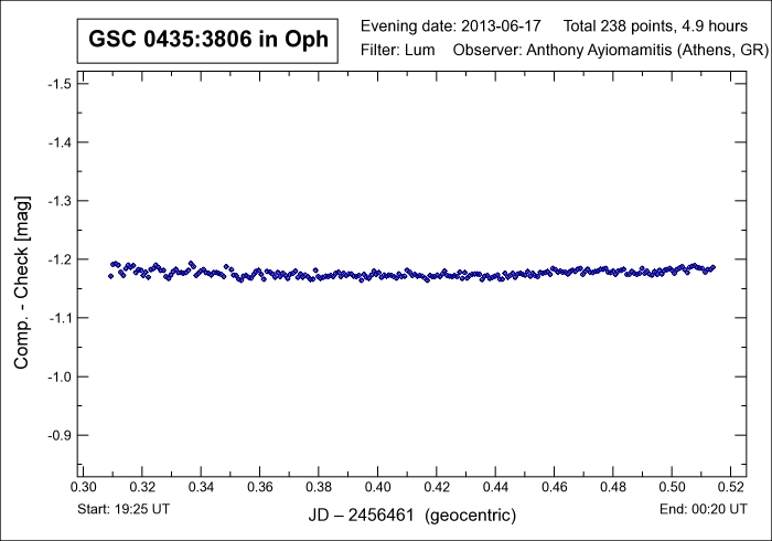 Software: CCDSoft V5.00.201 AIP4Win V2.4.0 Processing: Reduction Differential Photometry |
