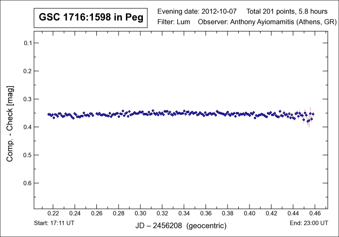 of 143.05 minutes and which involves a delta mag of 0.45 (v) magnitudes during this brief time interval. GSC 01716-01598 is a high amplitude