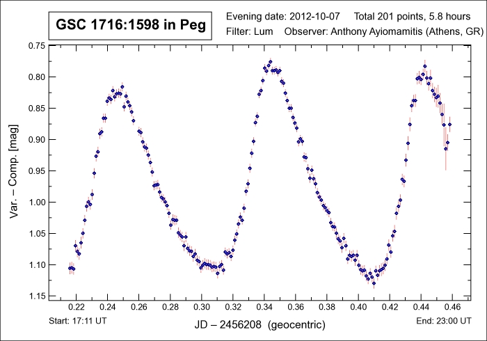 Note: The large-amplitude short-period pulsating star GSC 01716-01598 is a fast pulsating variable star with a period