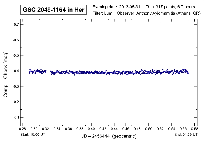 days and which involves a delta mag of 0.7 (C) magnitudes during this brief time interval. The variable nature of GSC 2049-1164 was first