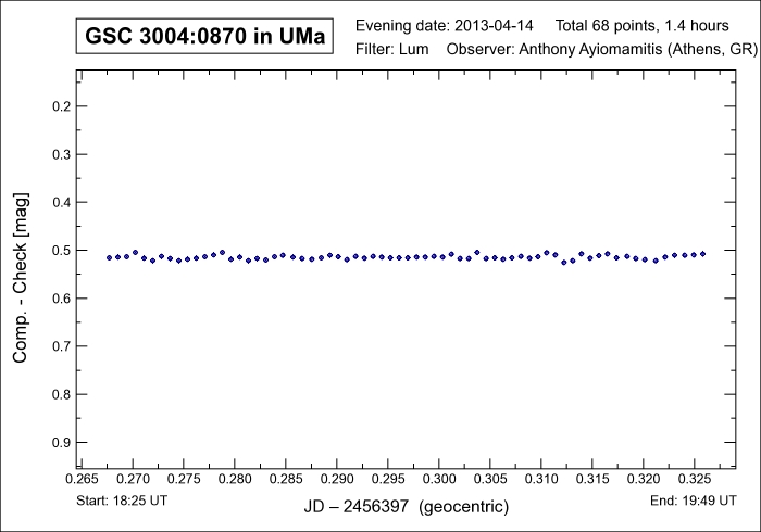 interval. GSC 03004-00870 is a high-amplitude delta Scuti variable and whose variable nature was discovered by