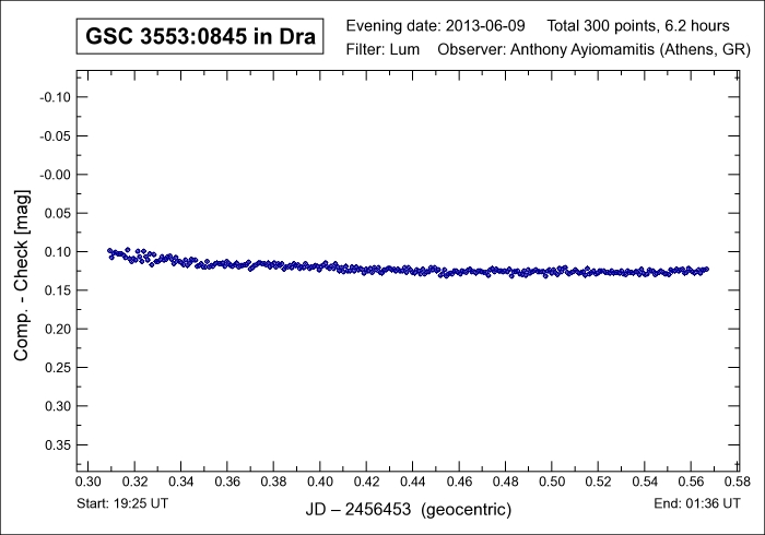 days and which involves a delta mag of 0.50 (C) magnitudes during this brief time interval. The variable nature of GSC 3553-0845 was first