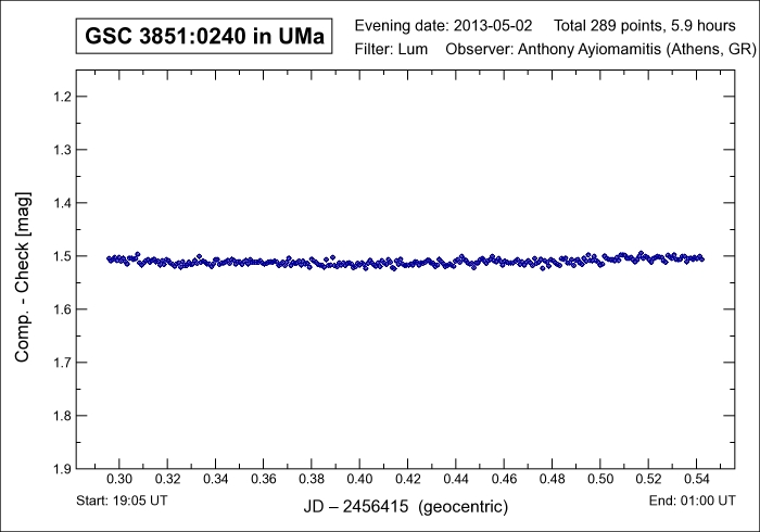 Software: CCDSoft V5.00.201 AIP4Win V2.4.0 Processing: Reduction Differential Photometry |