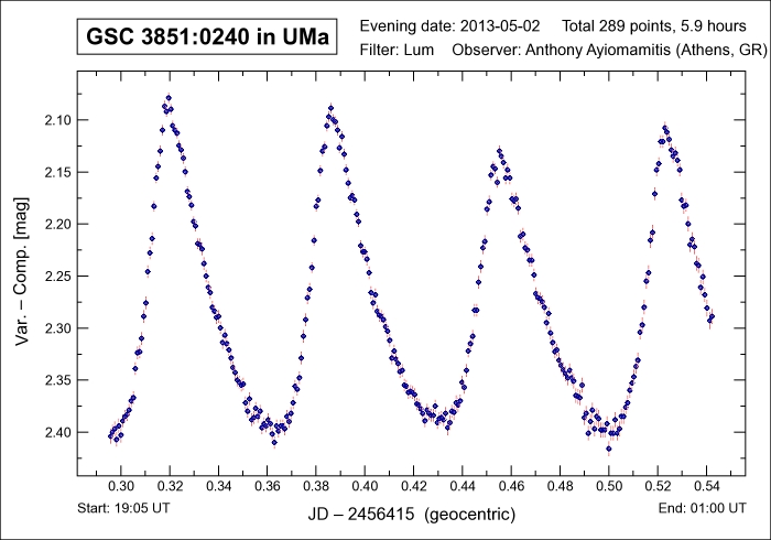 Note: The large-amplitude short-period pulsating star GSC 03851-00240 is a fast pulsating variable star with a