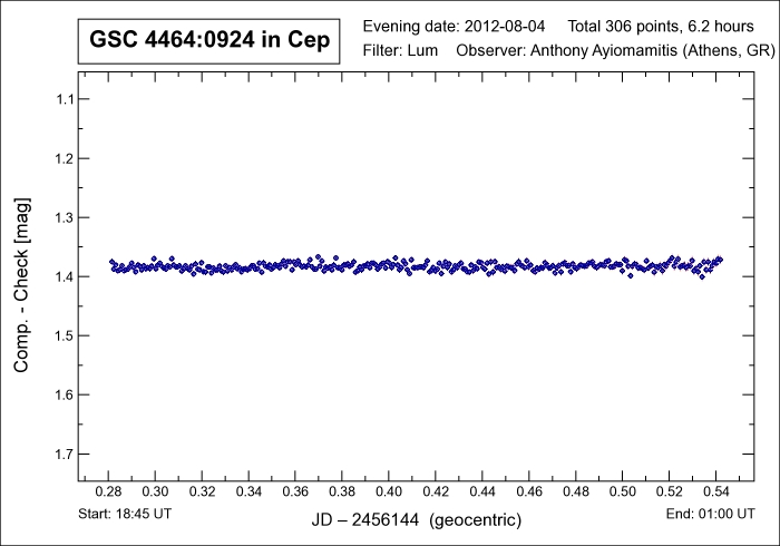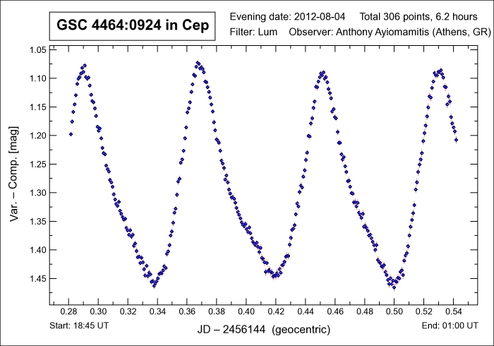 of 116.11 minutes and which involves a delta mag of 0.40 (v) magnitudes during this brief time interval. GSC 04464-00924 is a high-amplitude