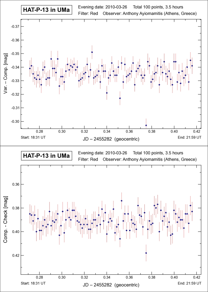 Note: The light curve for exoplanet HAT-P-13b in Ursa Major depicted below is one of the latest transitting