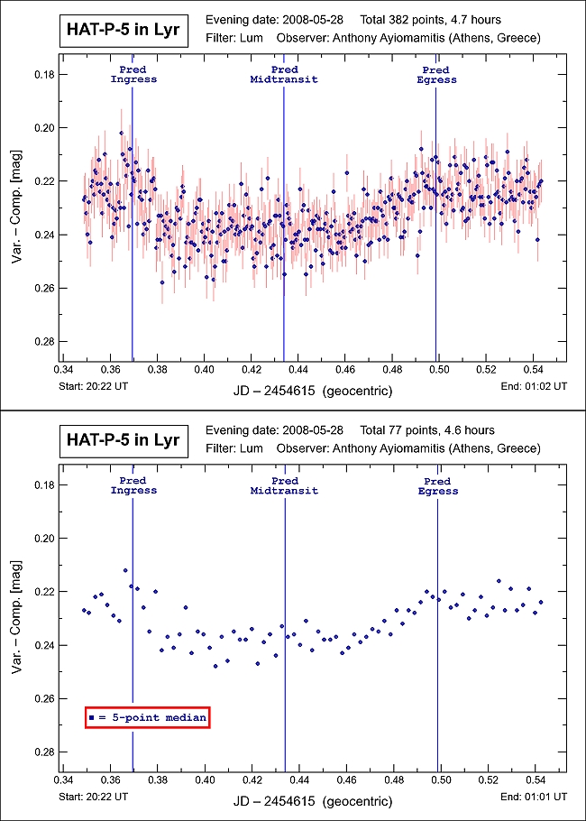 Note: The light curve for exoplanet HAT-P-5b in Lyra depicted below is one of the latest