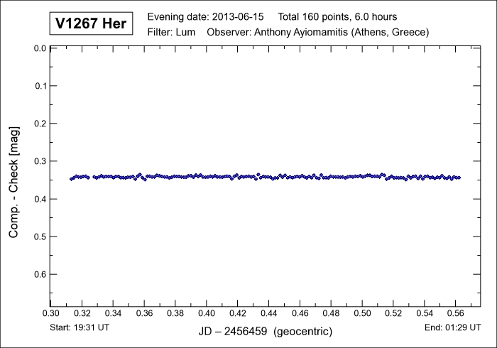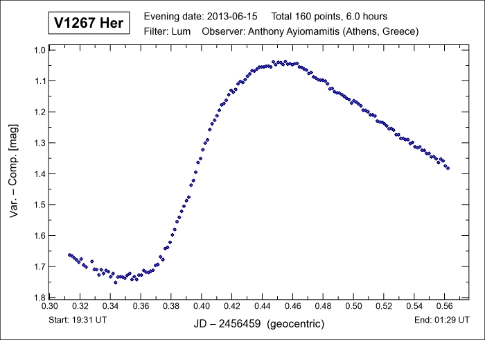 period of 0.4687883 days and which involves a delta mag of 0.90 (v) magnitudes during this brief time interval. V1267 Her is an