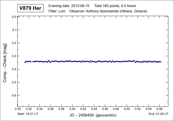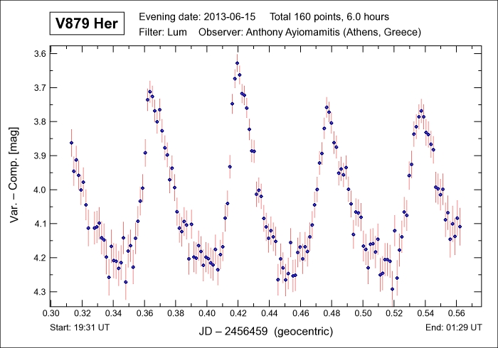 period of 81.93 minutes and which involves a delta mag of 0.65 (v) magnitudes during this brief time interval. V879 Her is an