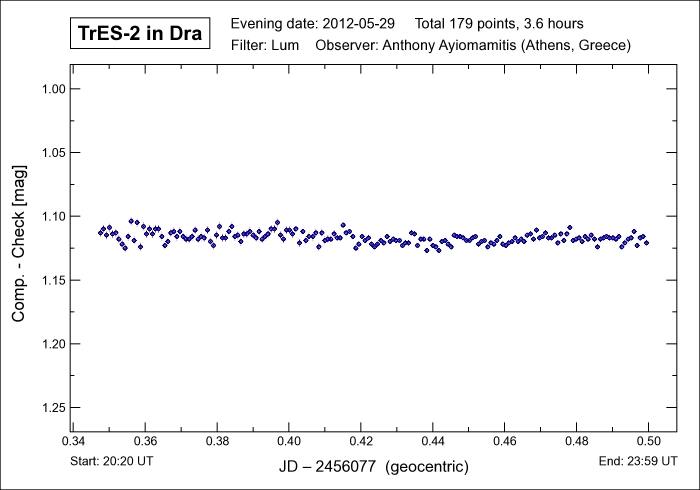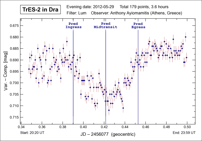 Note: The light curve for exoplanet TrES-2b in Draco depicted below is one of the latest transitting exoplanets,