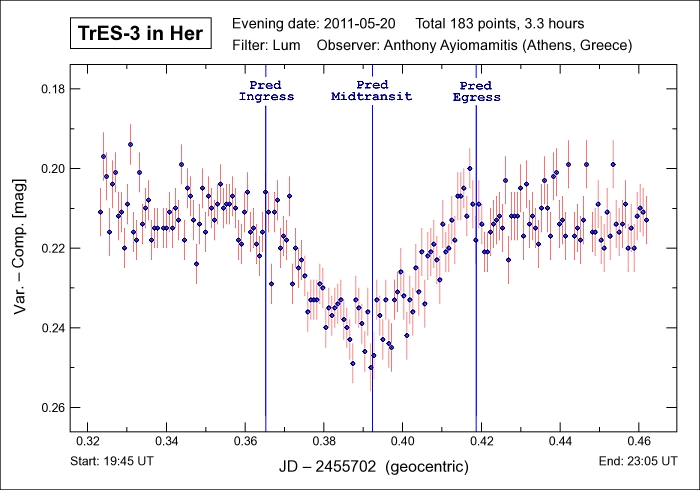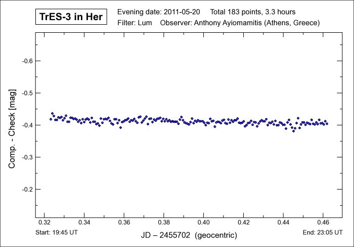 Note: The light curve for exoplanet TrES-3b in Hercules depicted below is one of the latest