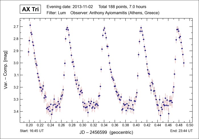 Note: The large-amplitude pulsating star AX Tri is a pulsating variable star with a period