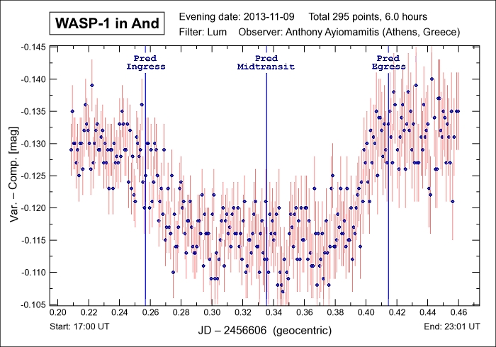 Note: The light curve for exoplanet WASP-1b in Andromeda depicted below is one of the earlier transiting exoplanets,
