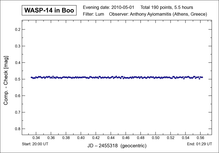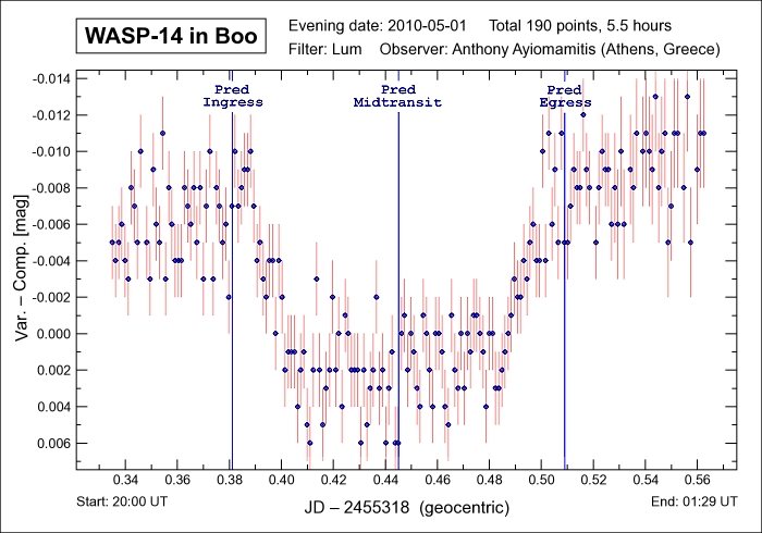 Note: The light curve for exoplanet WASP-14b in Bootes depicted below is one of the