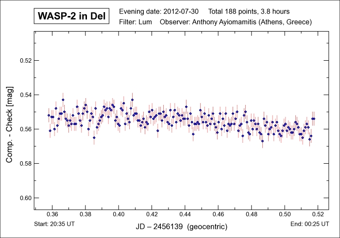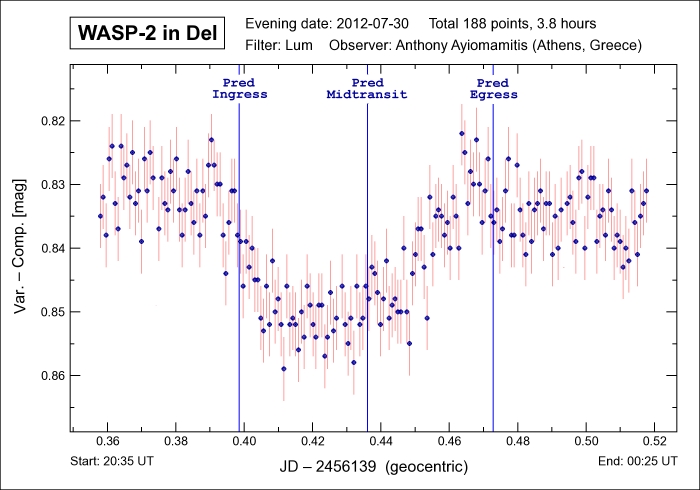 Note: The light curve for exoplanet WASP-2b in Delphinus depicted below is one of the latest transitting exoplanets,