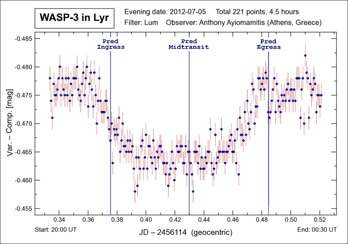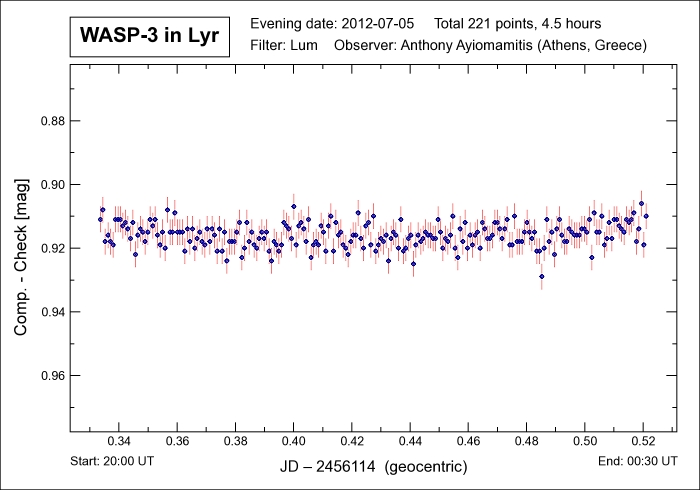 Note: The light curve for exoplanet WASP-3b in Lyra depicted below is one of the latest