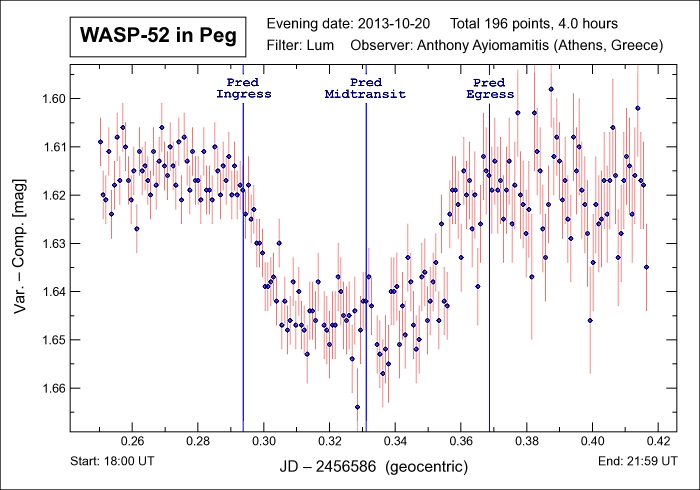 Note: The light curve for exoplanet WASP-52b in Pegasus depicted below is one of the latest