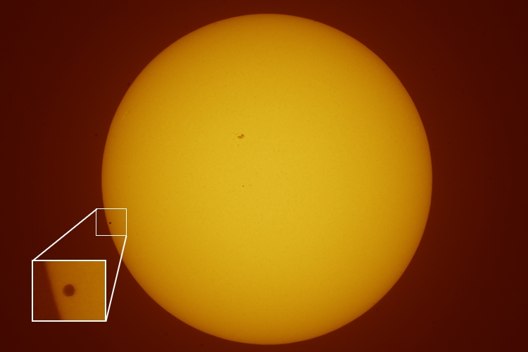Date: May 09, 2016 14:17:30 UT+3 Location: Athens, Greece Equipment: AP 160/f7.5 StarFire EDF AP 2x Convertible Barlow AP 1200/CP3 GEM Canon EOS 5D Mk I Baader ND5 Filter Exposures: 1 x 1/400 sec ISO 100 RAW Image Format 4368x2912 Image Size Manual Mode Continuous Servo Mode Software: Digital Photo Pro V2.1.1.4 Photoshop CS5 Processing: RAW to TIFF Conv Contrast/Brightness Unsharp Masking Levels Layers Resampling JPG Compression |