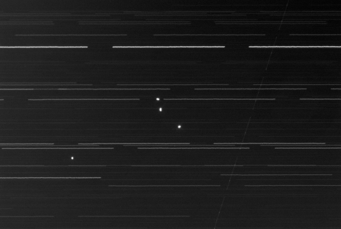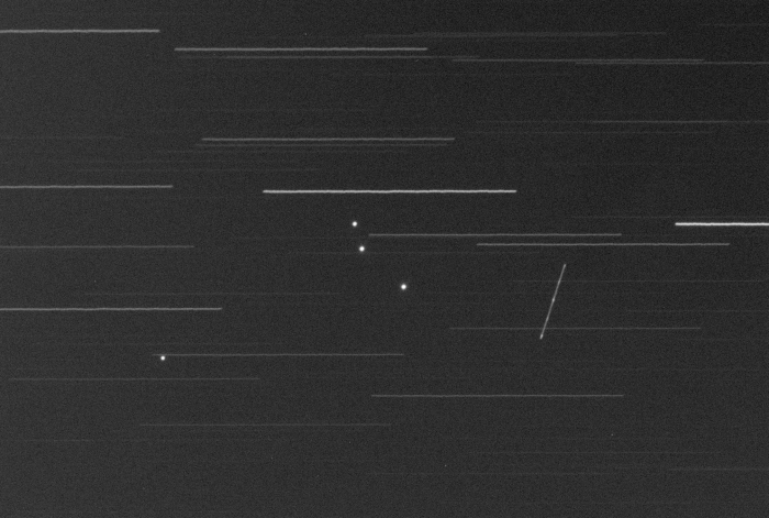 the fifteen one-minute exposures captured and which reveals some very slight motion for the three Hotbird satellites during the approximate