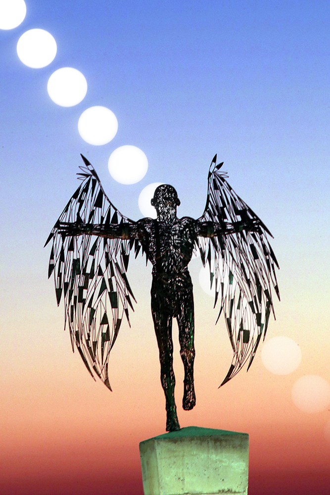 means to escape and until Daedalus came up with the ingenious plan to construct wings from feathers held together with wax, thereby allowing