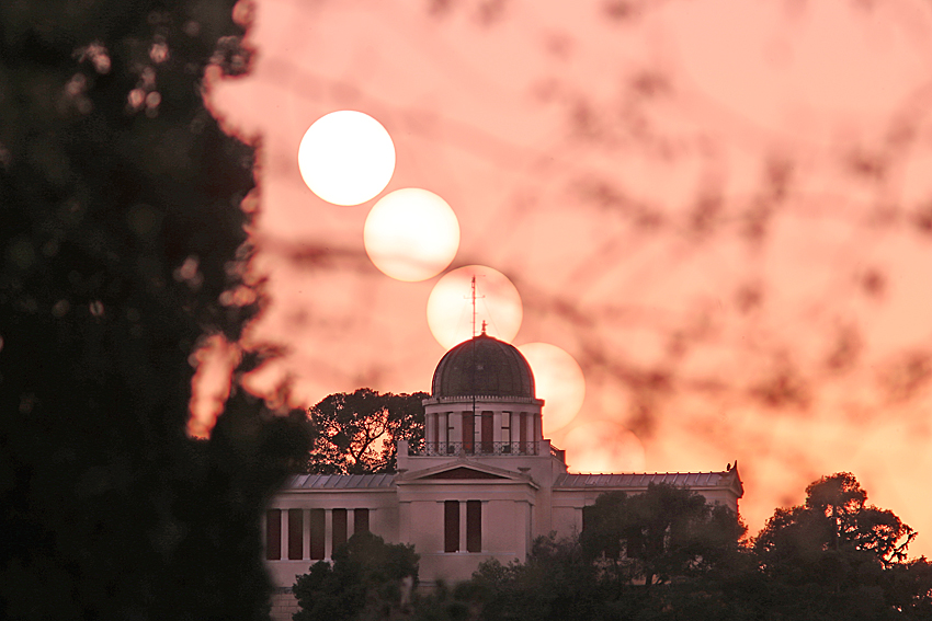 Note: For additional photos of the sun and/or full moon against other well-known Greek archaeological grounds