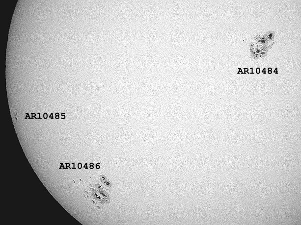 Note: The sunspot groups AR10484 (Zurich class: Ekc, 05° N, 15° W) and AR10486 (Zurich class: