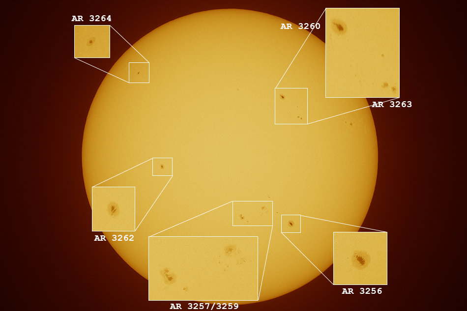 Note: The sunspot group AR 3256 in the image below is the most dominant group on the Sun (Zurich class: Eho;