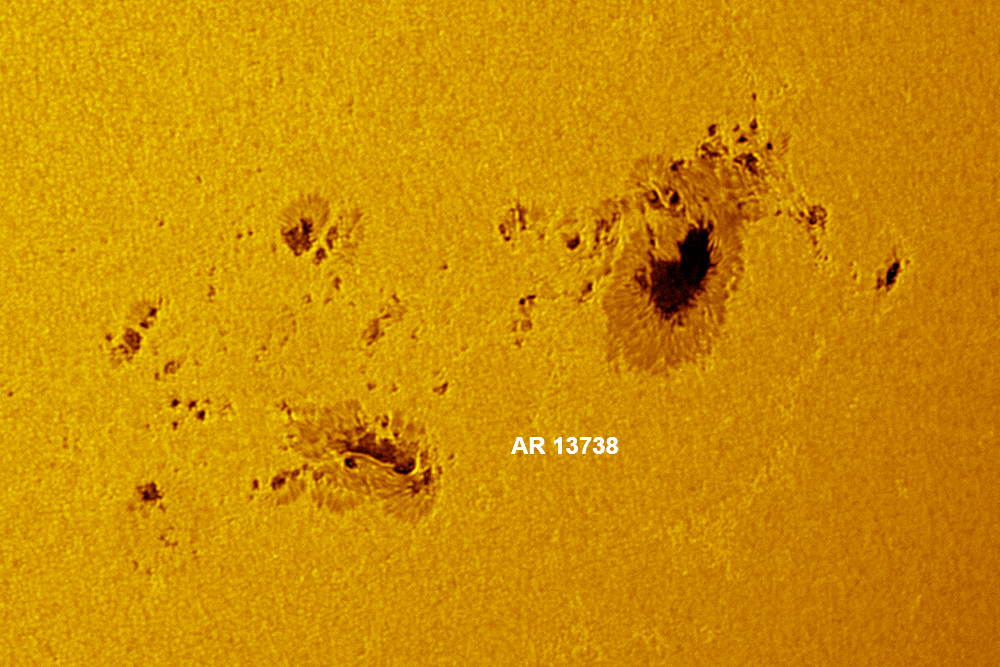 Note: The sunspot group AR 13738 in the image below is the most dominant group on the Sun. It is located at the