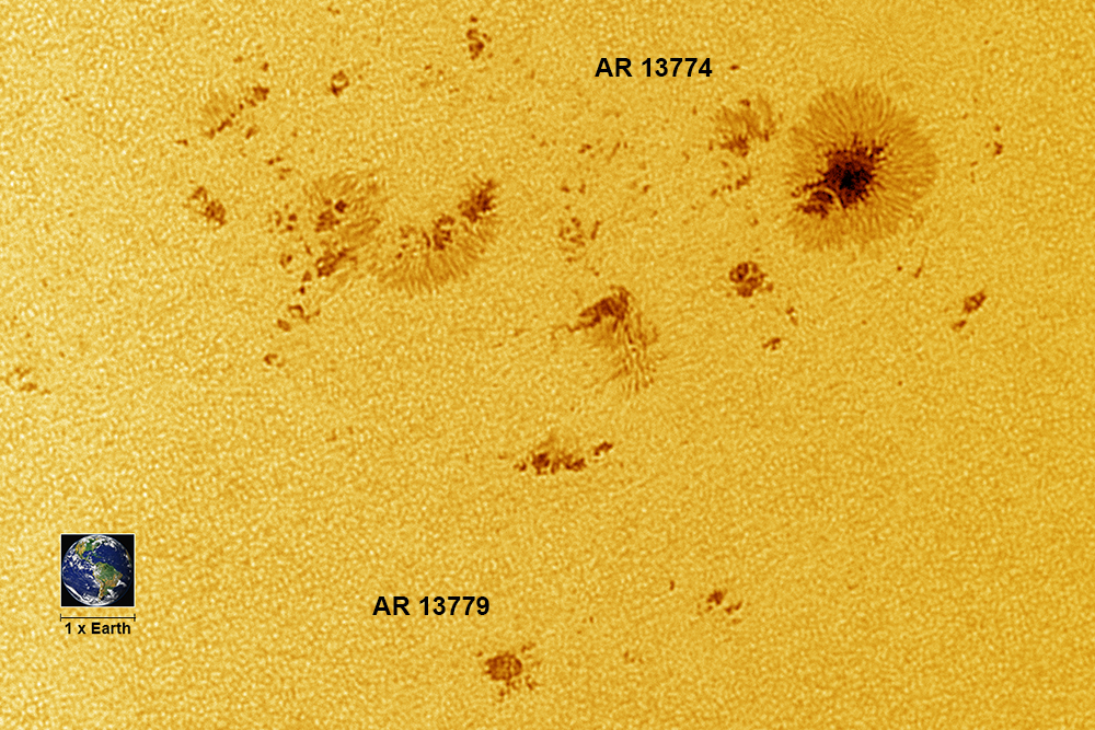 Note: The sunspot group AR 13774 in the image below is one of the most dominant groups on the Sun. It is located just