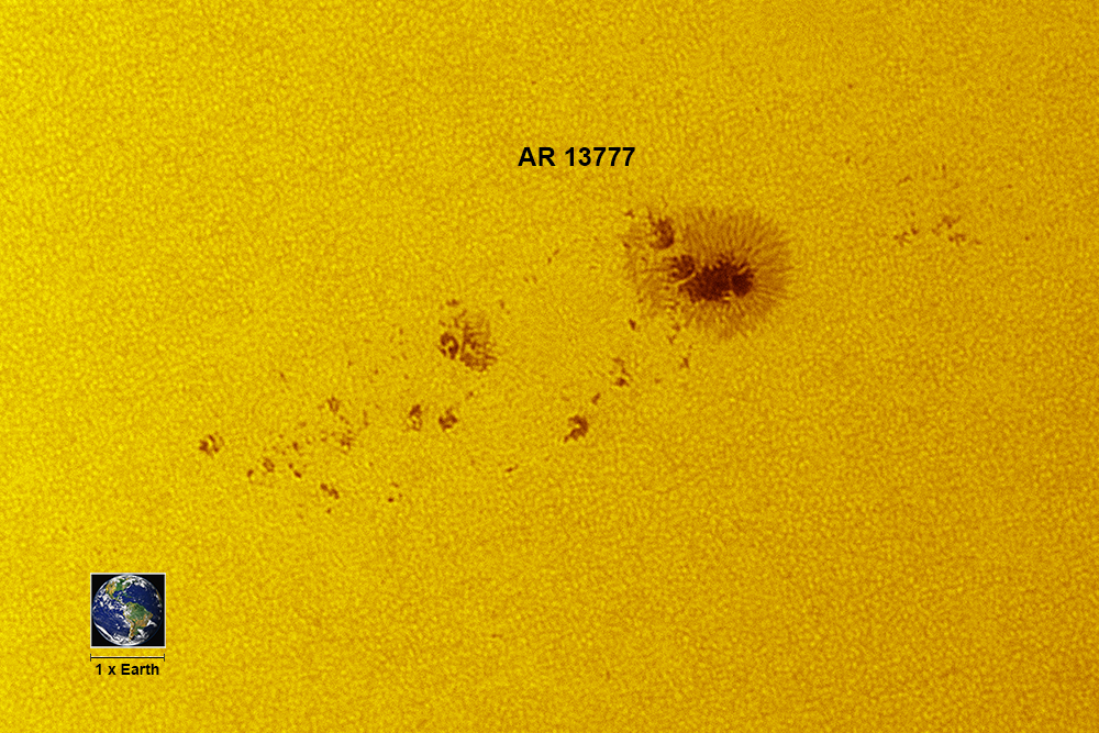 Note: The sunspot group AR 13777 in the image below is the larger solar active groups on the Sun. It is located just